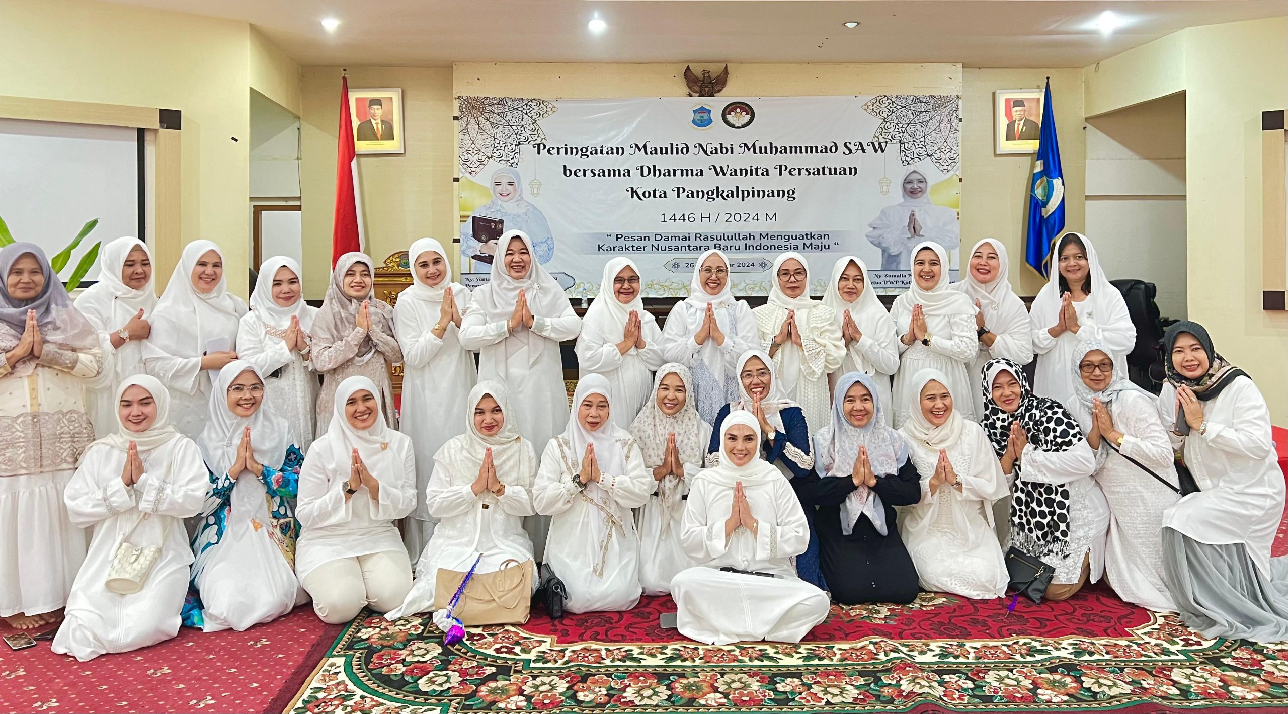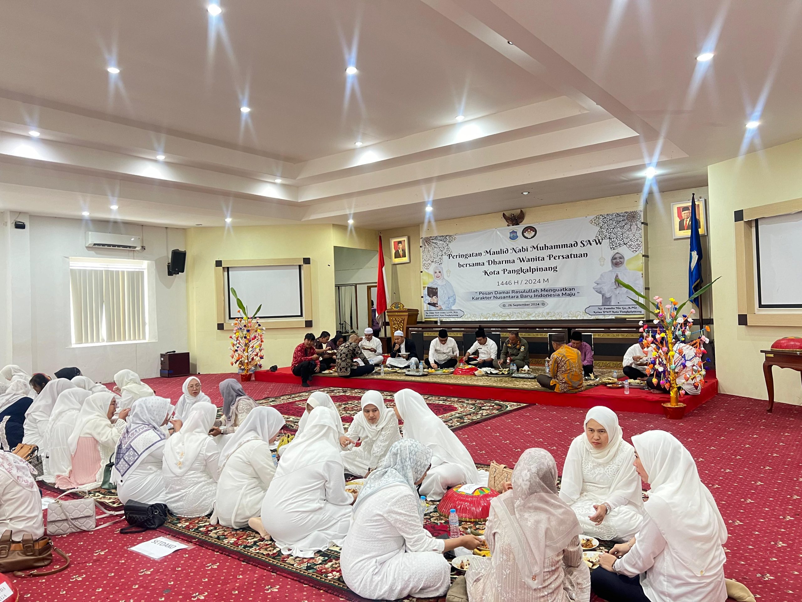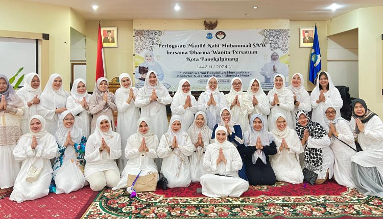 PANGKALPINANG — Dharma Wanita Persatuan (DWP) Kota Pangkalpinang memperingati Maulid Nabi Muhammad SAW 1446 H dengan menggelar acara nganggung bersama (26/7/24)